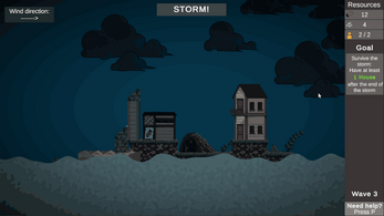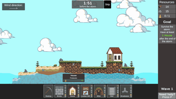 You find yourself on a desert island in the middle of the Sea of Gales. You have to build a town and survive the violent storms that are common in that part of the world.
